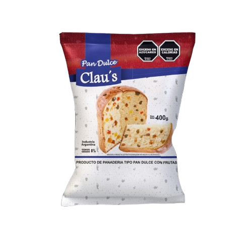 Pan dulce Clau´s con frutas. Cada caja contiene 8 unidades x 400grs.