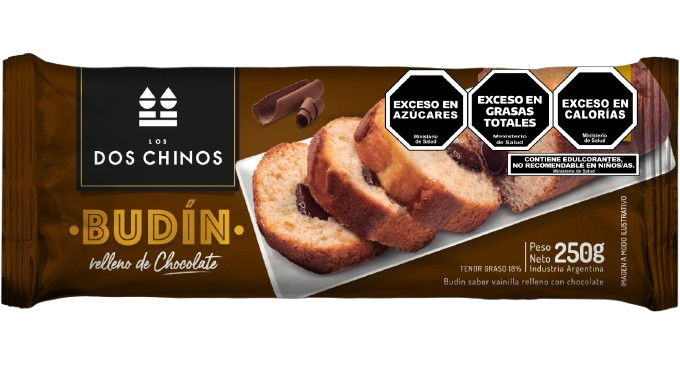 Budín los dos chinos de vainilla relleno con chocolate negro. Cada caja contiene 12 unidades x 250grs.