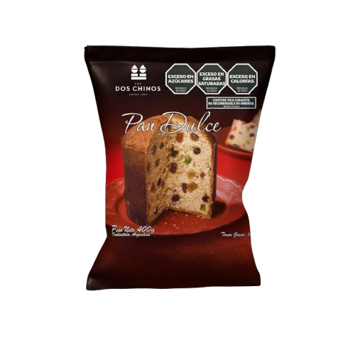 Pan dulce los dos chinos, con frutas y pasas. Cada caja contiene 8 unidades x 400/500grs.